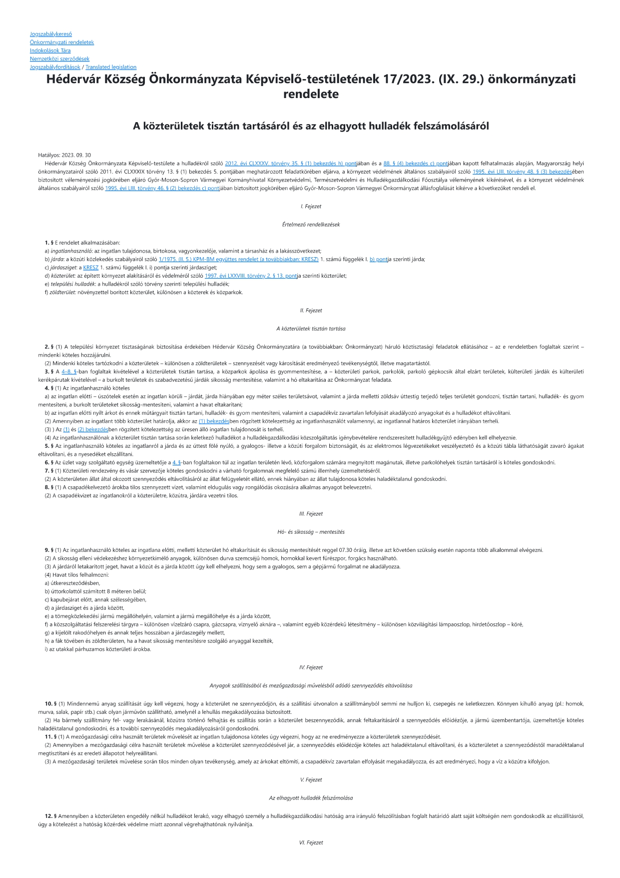 A közterületek tisztán tartásáról és az elhagyott hulladék felszámolásáról.